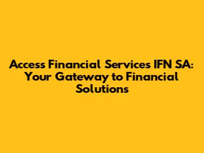 Hey everyone, let's dive into the world of Access Financial Services IFN SA! Navigating the financial landscape can sometimes feel like trying to solve a Rubik's Cube blindfolded, right? But don't worry, we're here to break down what Access Financial Services IFN SA is all about, what it offers, and how it might just be the key to unlocking your financial dreams. We'll explore their services, understand who they cater to, and give you the lowdown on how they can help you manage your money like a pro. So, grab a coffee, sit back, and let's get started. We are going to explore this topic and provide a comprehensive guide that includes all the essential information.