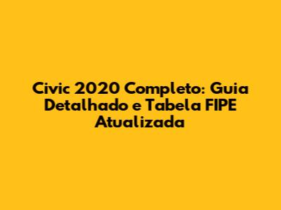 Civic 2020 Completo: Guia Detalhado E Tabela FIPE Atualizada