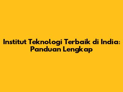 Institut Teknologi Terbaik Di India: Panduan Lengkap