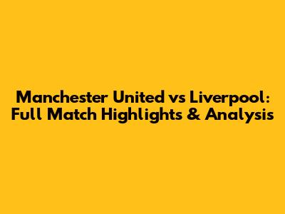 Man Utd Vs Liverpool: Full Match Highlights & Analysis
