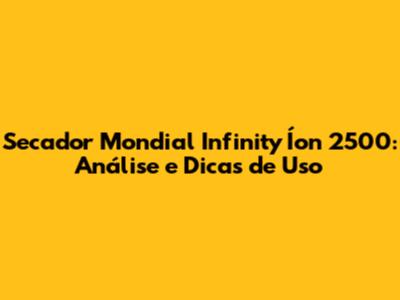 Mondial Infinity Íon 2500: Análise E Dicas De Uso