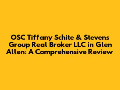 Hey there, real estate enthusiasts! Today, we're diving deep into the world of real estate, specifically focusing on OSC Tiffany Schite & Stevens Group, operating under Real Broker LLC in Glen Allen. If you're anything like me, you're always on the lookout for the best real estate professionals to help you navigate the often-turbulent waters of buying, selling, or investing in property. Finding the right real estate team can be the difference between a smooth, successful transaction and a stressful, drawn-out ordeal. So, let's get into the nitty-gritty and see what makes OSC Tiffany Schite & Stevens Group tick, what people are saying, and if they're the right fit for your real estate needs. We'll be looking at everything from their expertise and services to client testimonials and overall market presence. Let's make sure you're well-informed before making any decisions, shall we?