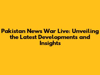 Pakistan News War Live: Breaking Updates & Analysis