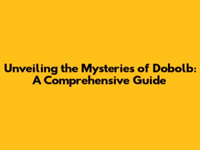 Unveiling The Mysteries Of Dobolb: A Comprehensive Guide